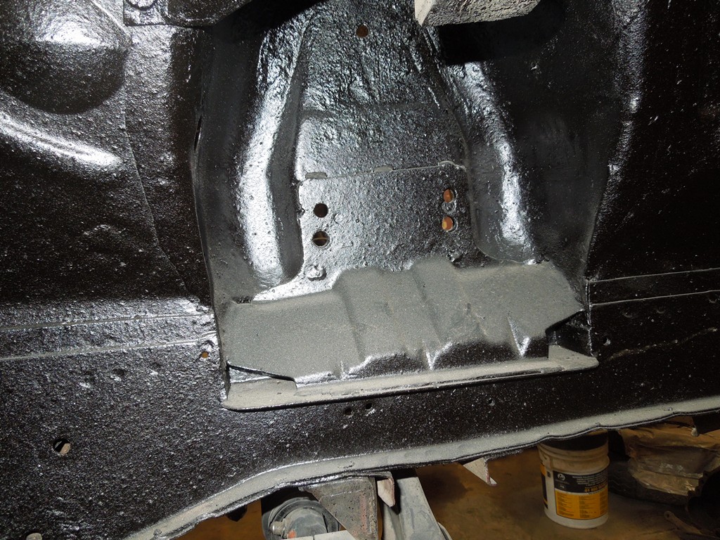 the final solution to make the shelby drop possible in the narrow 74 shock tower: cut down into the frame rails...