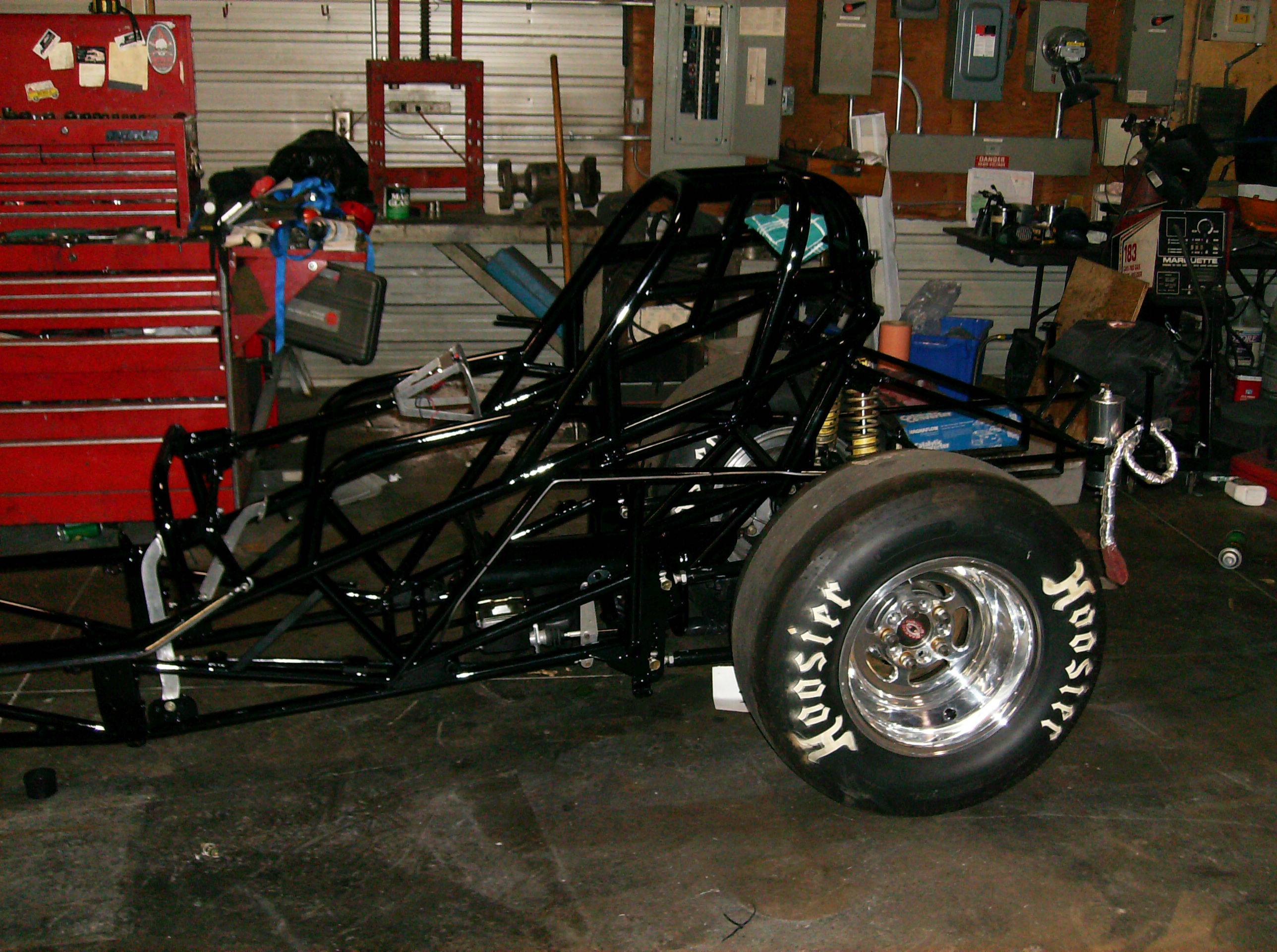 Rearend back in, Mocked up with wheels and tires.